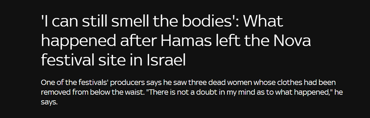It also meant that many dead were young women who were sexually violated before (and in some cases after) being killed. Even the United Nations, no friend of Israel, acknowledged this reality.