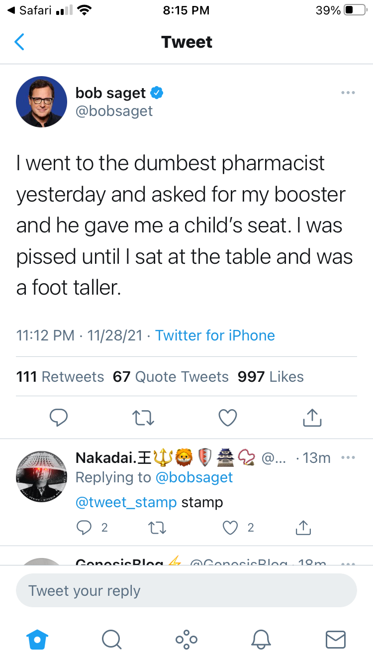 On Nov. 28 he joked publicly about being boosted