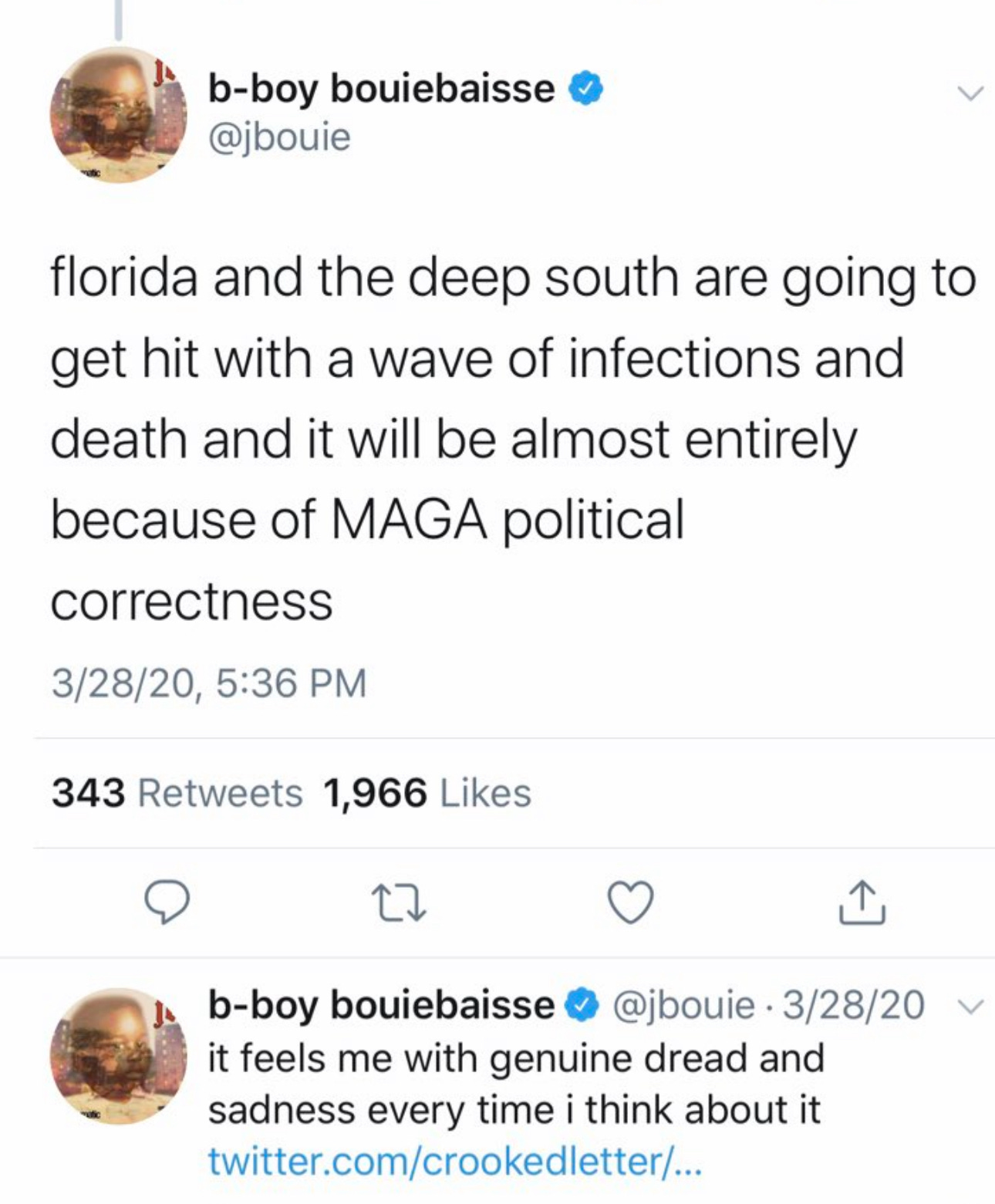 It’s fair to say that was… not the consensus view. The few states that had not already locked down faced increasingly harsh pressure to do so. On Twitter the mood ranged from hysterical to flat-out apocalyptic: