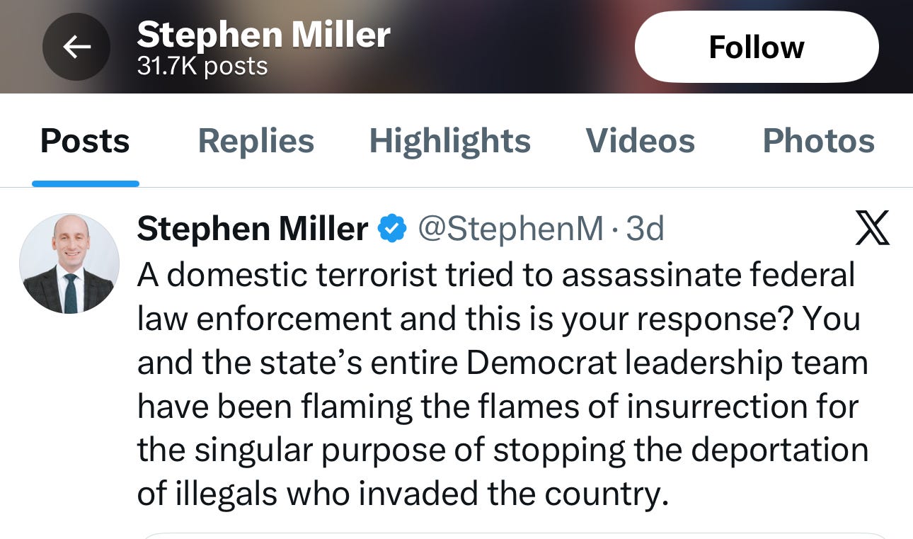 Noem lied. But Miller went further, attacking Presti as a domestic terrorist.