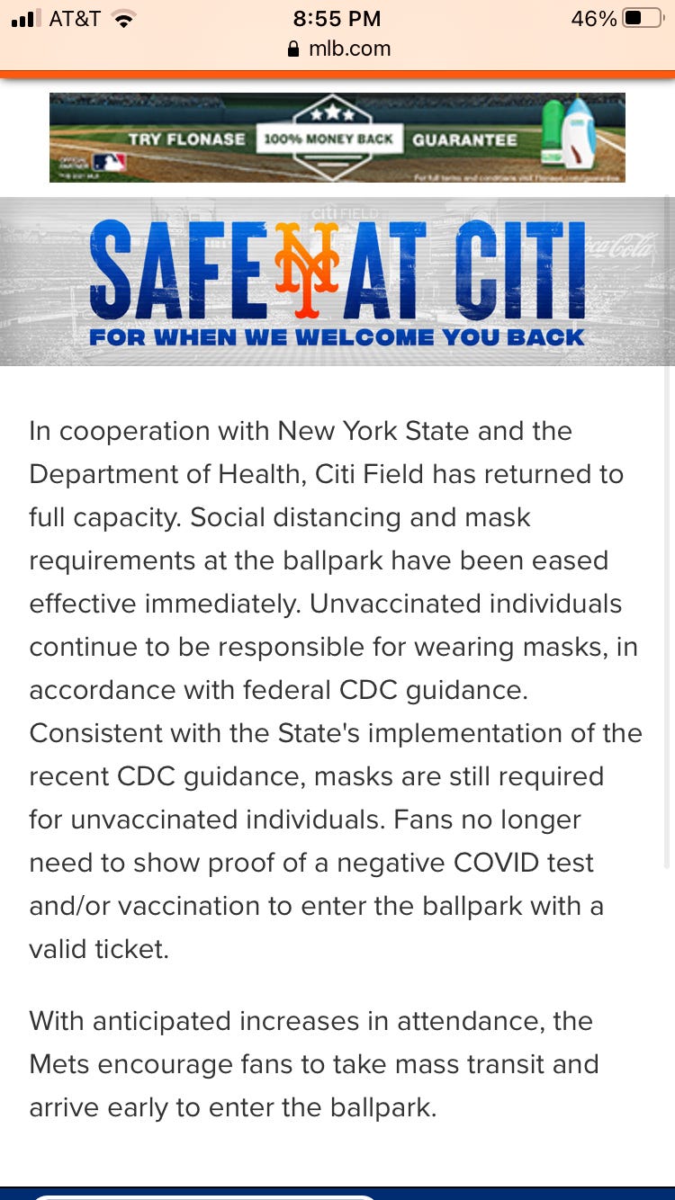 In the real world, nobody cares about corona anymore. Even in New York. Not only do you NOT have to show proof you’re vaccinated at Citi Field (or anywhere else), the Mets “encourage fans to take mass transit.” Super-spreaders, anyone?