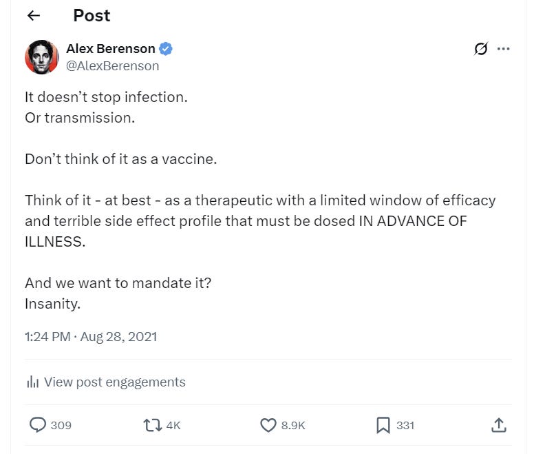 The committee asks witnesses not to release their opening statements until the hearing begins, so I cannot tell you exactly what I’m going to say yet. But as you can imagine, I’ll be talking about Berenson v Biden, how the Biden White House and Pfizer officials worked together to censor me — and how, despite the evidence I’ve accumulated, Judge Jessica G.L. Clarke dismissed my lawsuit last week.