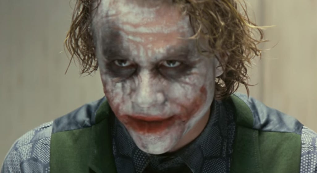 Movie villains are notoriously prone to call themselves heroes, of course. But the Joker isn’t really making that argument. He’s erasing the boundary between hero and villain.
