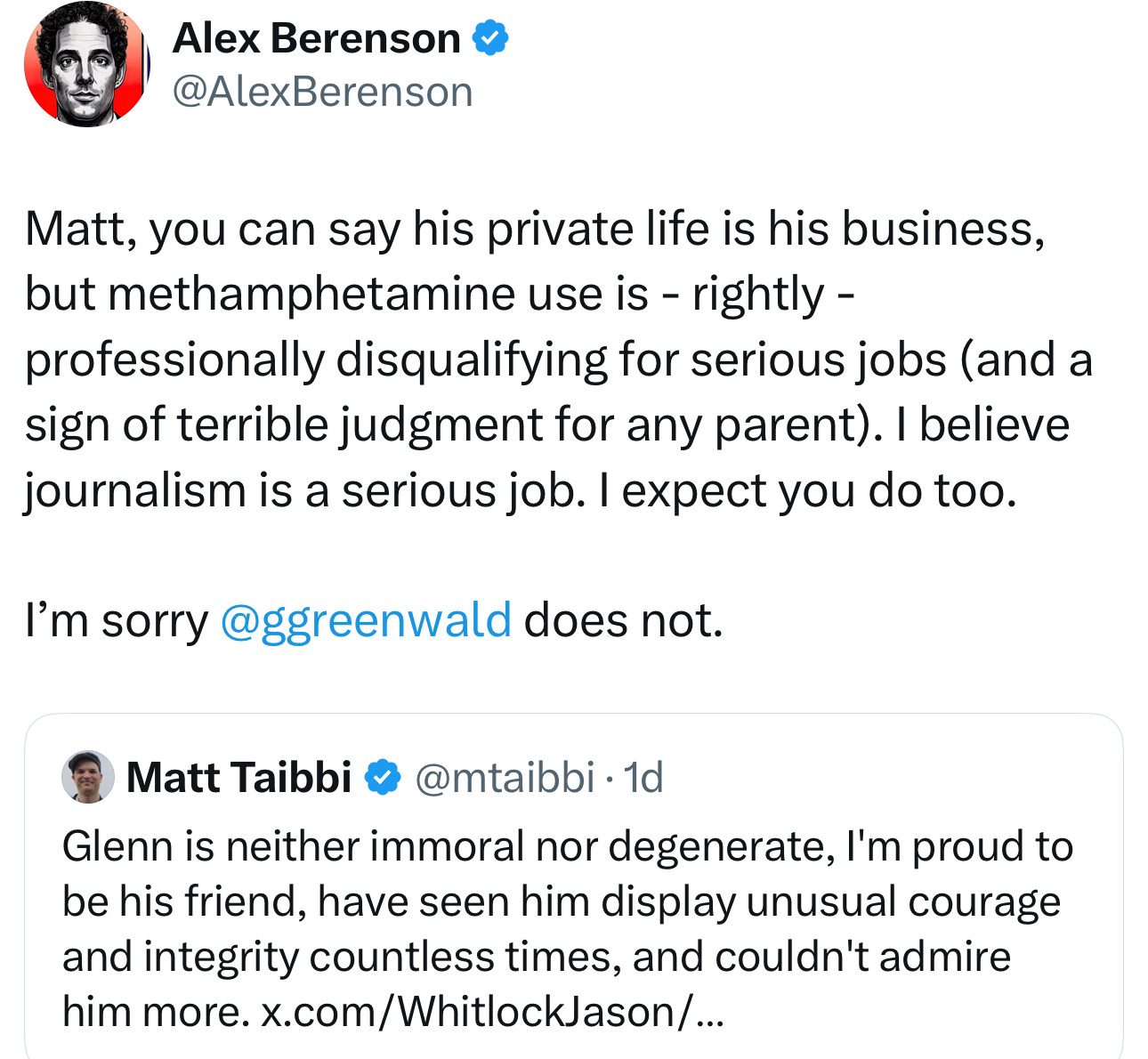 I wouldn’t want my pilot or surgeon using methamphetamine, and a journalist with an audience as large as Glenn Greenwald can do at least as much good, or harm, as any pilot or surgeon.