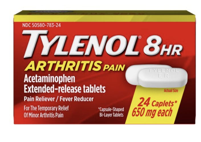 First things first. Tylenol is a lousy drug. It’s sold over-the-counter and heavily advertised, so people assume it’s very safe. It’s not. In overdose, it is toxic to the liver. And overdosing is easy. Just four grams of Tylenol — roughly six extra-strength 650 milligram tablets — in 24 hours can cause liver damage, and acetaminophen overdoses cause half of liver failures in the United States, according to a 2023 paper.