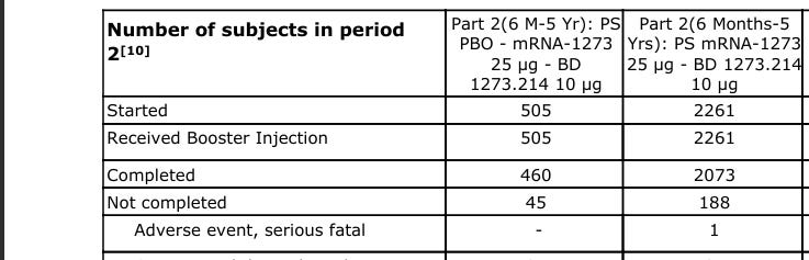 The original mRNA vaccine formulations had not worked well against Omicron in children or adults. Moderna hoped to show that updated jabs that made the body produce a Omicron spike would protect better against Omicron. Because this portion of the trial did not include a placebo-blinded arm, the company would have known immediately that the death followed vaccination.