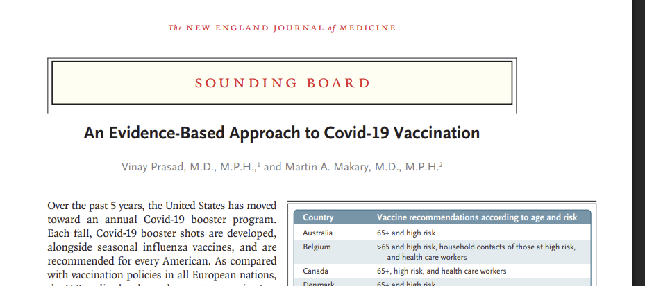 Drs. Marty Makary, the new FDA commissioner, and Vinay Prasad, the new head of the FDA division that regulates vaccines, made the announcement in an article in the New England Journal of Medicine called “An Evidence-Based Approach to Covid-19 Vaccination.”