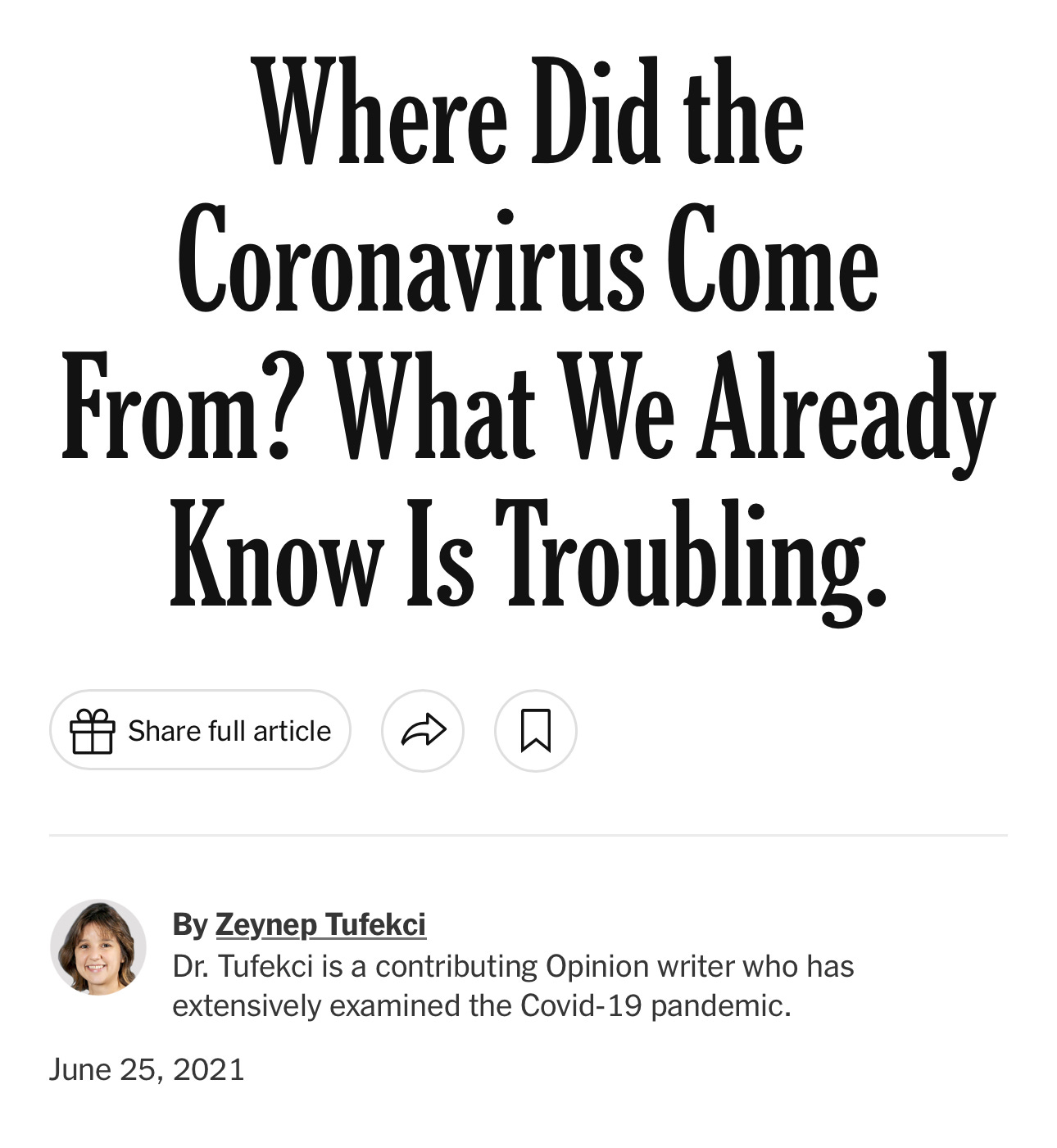 Keep in mind, this was May 2021 - not early 2020. Anyone paying even the slightest attention knew that the evidence of a lab leak was close to overwhelming (hence Tufekci’s piece the next month).